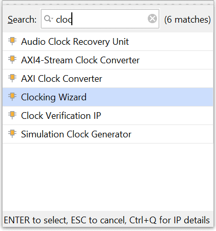 Add DDR3 SDRAM and USB UART to the design by double-clicking the corresponding peripherals. In the Diagram window, right-click and select “Add IP” from the popup menu. Search for “MicroBlaze” ,”clocking wizard” & “AXI Timer” and add them to the design by double-clicking them.