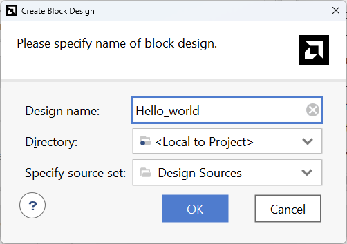 In the Flow Navigator panel, select Create Block Design under IP INTEGRATOR. Enter a name for the block design and click OK. An empty block design will be created.
