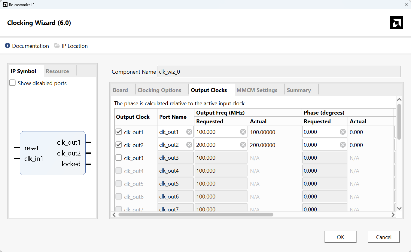 customize “Output Clocks” settings as shown in the following image and click “OK”.