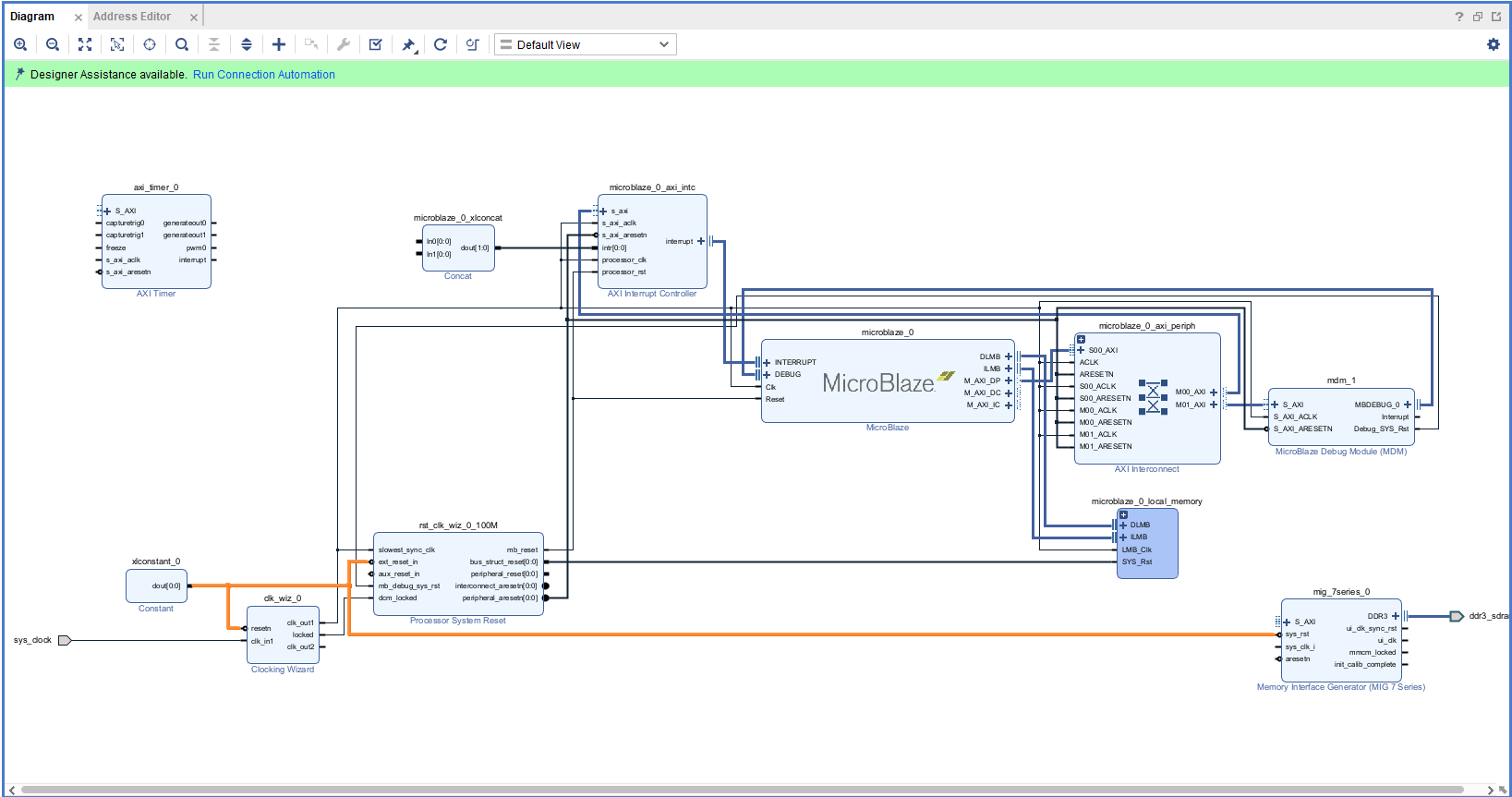 Vivado will now connect the blocks together to make a complete system.