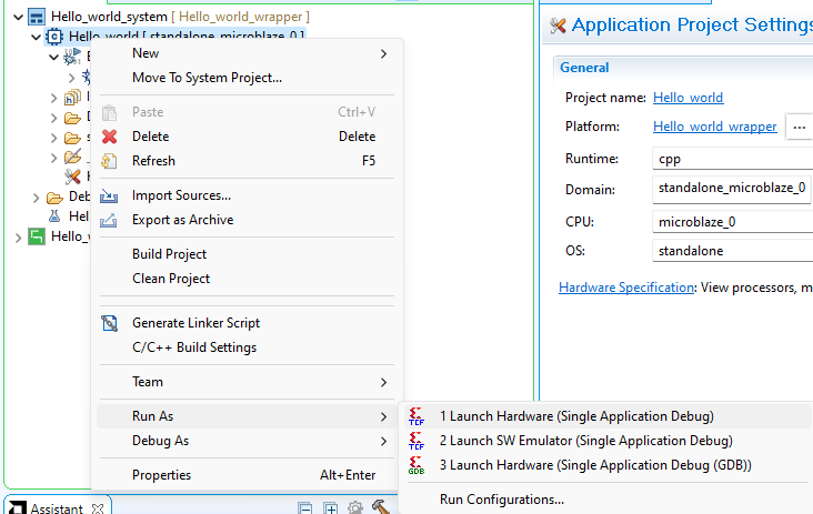 Right-click on the .elf file in the Project Explorer and select “Launch on Hardware” as shown below.