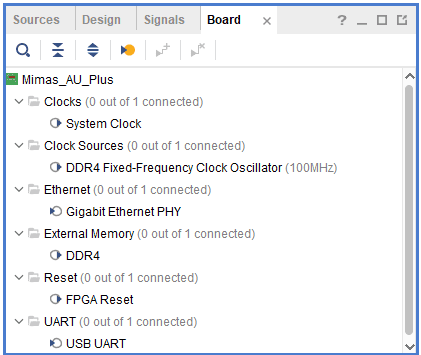 Click the “Board” tab. The default peripherals available for the Aller board will be listed as shown below.