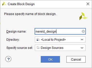 Under the “Flow Navigator” panel, click “Create Block Design” under the IP Integrator section. Enter a name for the block design and click “OK”. An empty block design will be created.