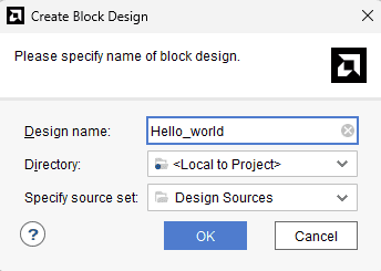 Under the “Flow Navigator” panel, click “Create Block Design” under the IP Integrator section. Enter a name for the block design and click “OK”. An empty block design will be created.