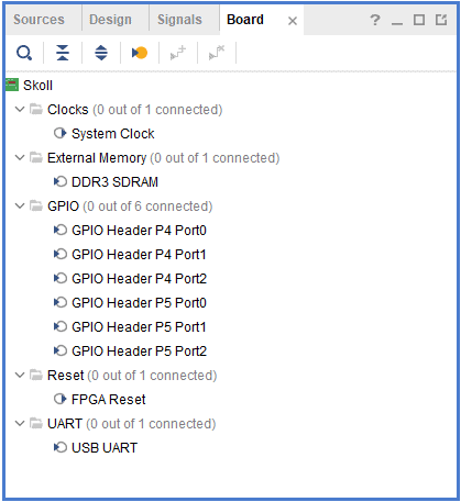 Click the “Board” tab. The default peripherals available for the Nereid board will be listed as shown below.