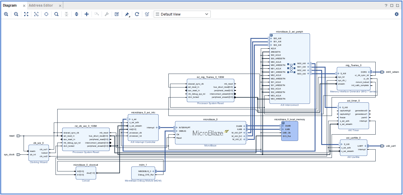 Vivado Design Suite by Xilinx is used for synthesis and analysis of HDL designs with additional features for SOC development and high-level synthesis. Xilinx recommends use of Vivado Design Suite for new designs with Ultra scale, Virtex-7, Kintex-7, Artix-7, and Zynq-7000. Complete pack of Vivado Design Suite contains Vivado High-Level Synthesis, Vivado Simulator, Vivado IP Integrator and Vivado TCL Store. We will be using Vivado IP Integrator alongside Vitis to create our “Hello World” project for Skoll Kintex 7 FPGA Module. The design will contain a Microblaze soft processor and peripherals connected together by AXI bus. Thanks to the excellent tools provided by Xilinx, most of the design can be done without writing any code at all.