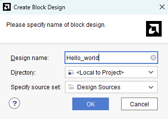 In the “Flow Navigator” panel, select “Create Block Design” under the IP integrator section. Give an appropriate name (Eg: “Hello_world“) to the design and click “OK“. Select “Board” in the “Block Design” block. The default peripherals available for Mimas A7 Mini Board will be displayed.