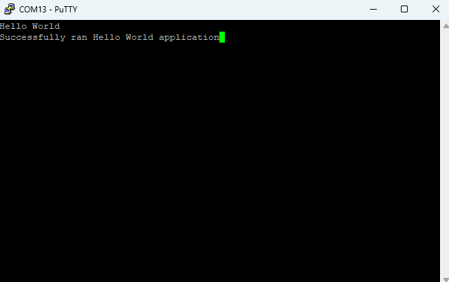 If everything went well, the application running on the board should print “Hello World” over the USB UART and should be displayed on the Serial Terminal application.