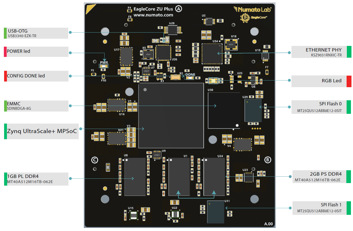 - Flash Memory: Dual parallel 1Gb SPI flash memories.