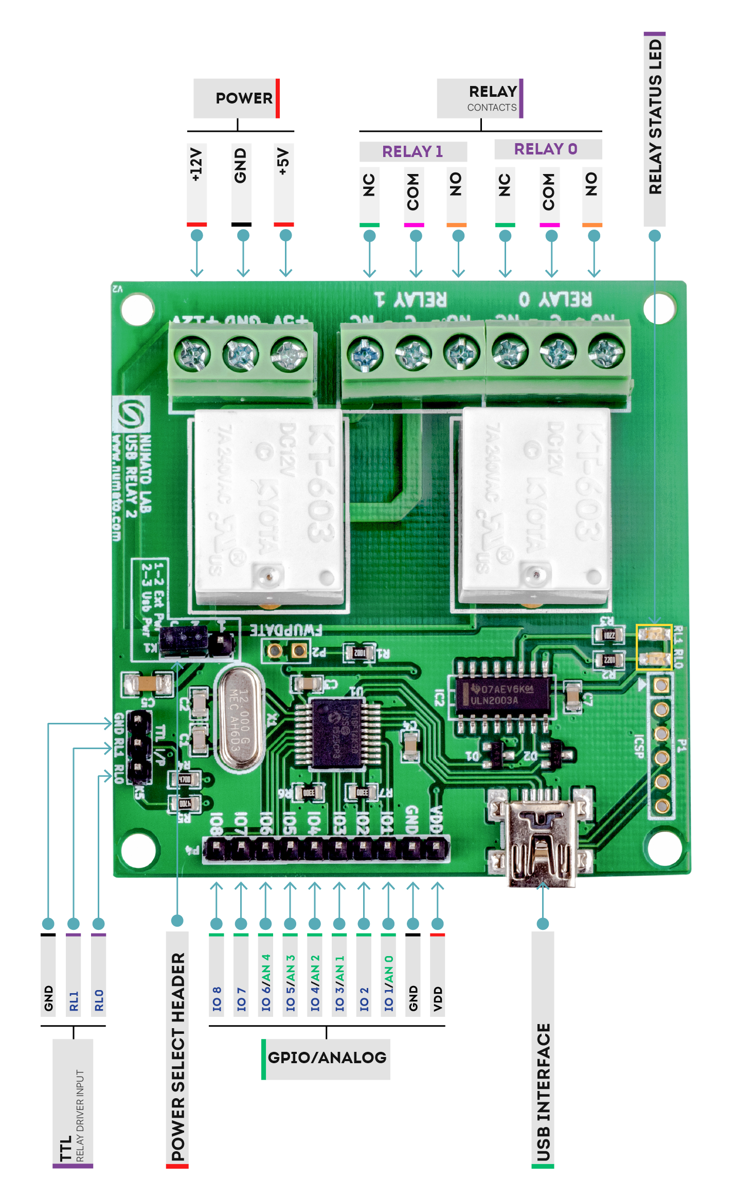 2 onboard 12V/24V SPDT Relays