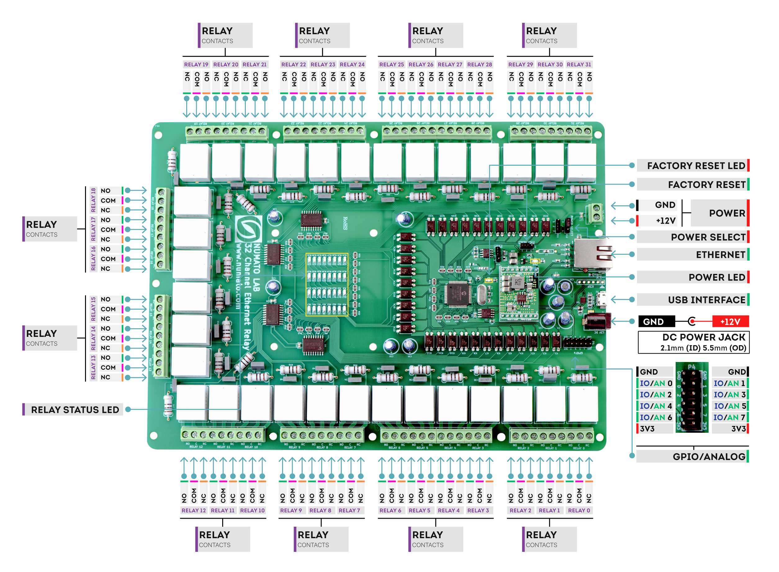 32 onboard 12V/ 24V SPDT Relays