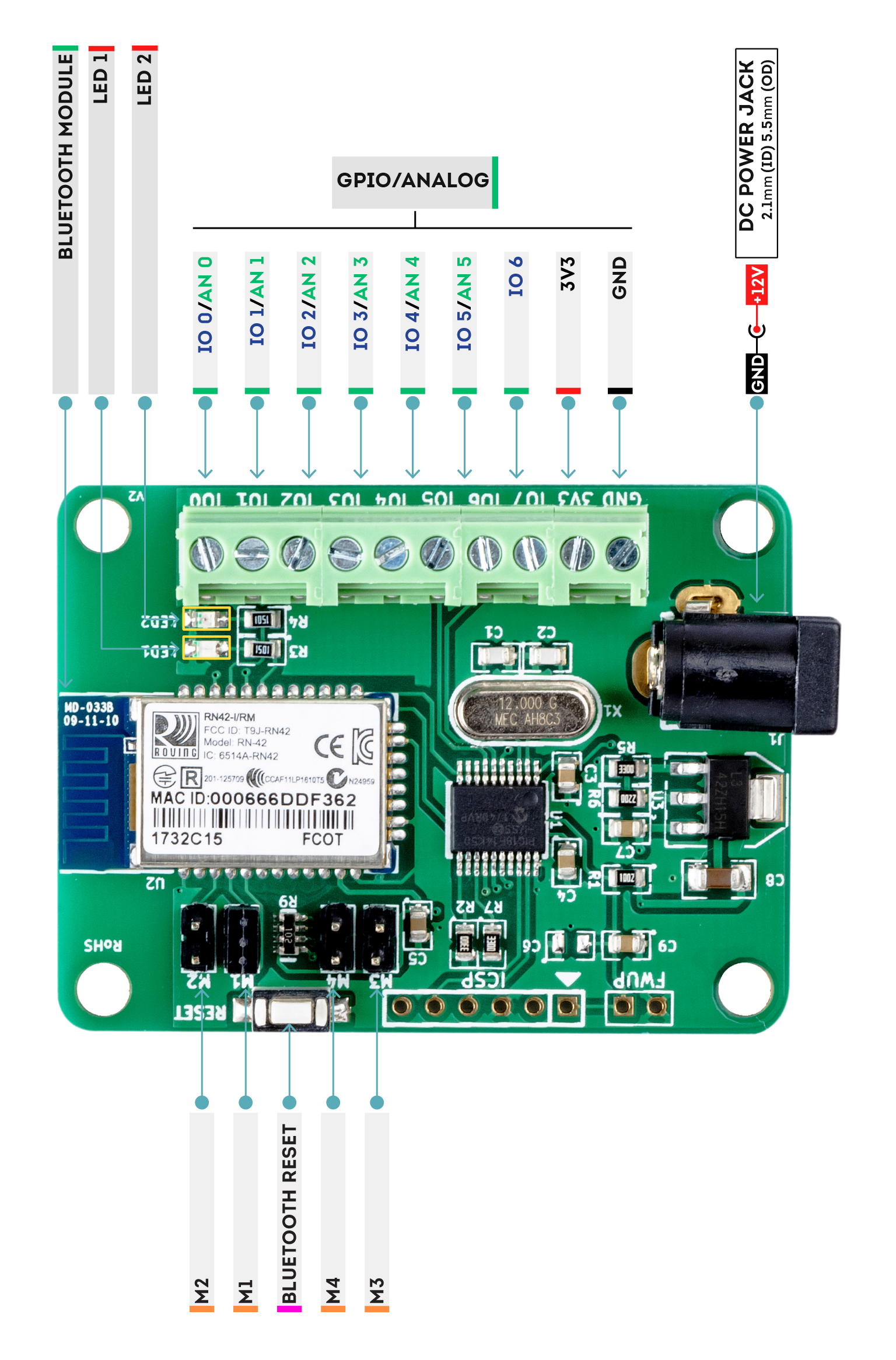 - 6 Analog input channels (Multiplexed with GPIOs)