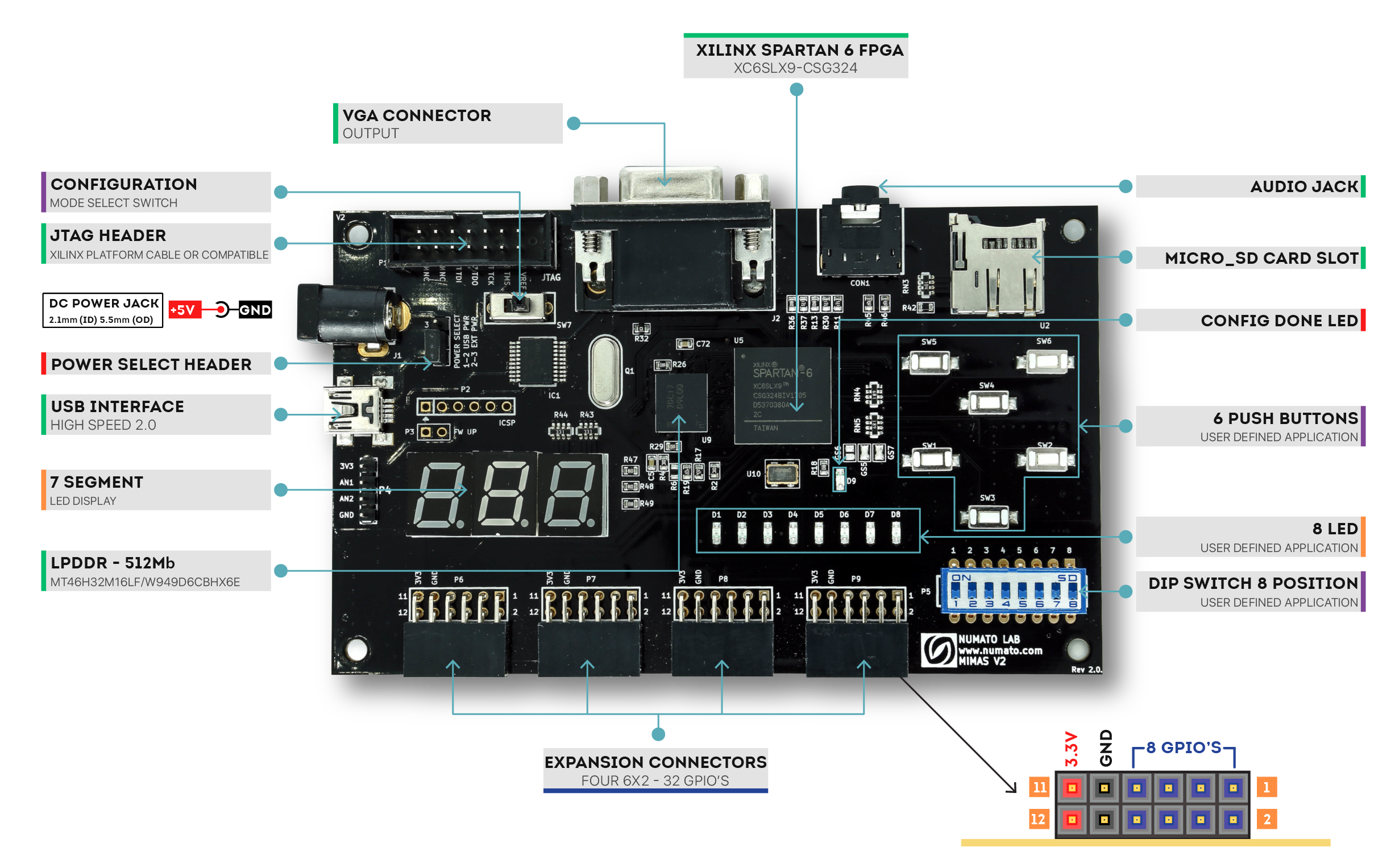 MIMAS V2 is a feature-packed yet low-cost FPGA Development board featuring AMD Spartan-6 FPGA. MIMAS V2 is specially designed for experimenting and learning system design with FPGAs. This development board features AMD SPARTAN XC6SLX9 CSG324 FPGA with onboard 512Mb DDR SDRAM. The USB 2.0 interface provides fast and easy configuration download to the onboard SPI flash. No need to buy an expensive programmer or special downloader cable to download the bitstream to the board.